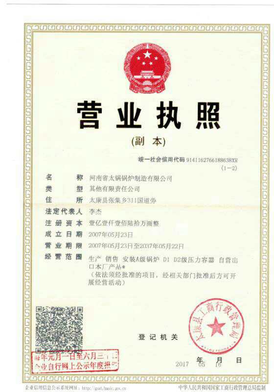 河南省太鍋鍋爐制造有限公司(原河南省太康鍋爐廠始建于1976年)始建于70年代初,經(jīng)40多年的艱辛探索,靠科技興業(yè),走科學(xué)管理之路,現(xiàn)已發(fā)展成為承接制造、安裝、設(shè)計(jì)大、中型供熱系統(tǒng),生產(chǎn):SZS燃油燃?xì)庹羝仩t、燃煤蒸汽鍋爐、燃油鍋爐、燃?xì)忮仩t、電加熱鍋爐、生物質(zhì)鍋爐、茶水鍋爐、有機(jī)熱載體鍋爐、熱風(fēng)鍋爐,蒸壓釜、燃油蒸汽鍋爐、燃?xì)庹羝仩t、燃油熱水鍋爐、燃?xì)鉄崴仩t并承擔(dān)安裝120噸熱水鍋爐、蒸汽鍋爐,生物質(zhì)鍋爐,加工制造一、二類蒸壓釜、壓力容器,化工機(jī)械的省一級(jí)**企業(yè)。